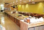 A gastronomia japonesa contemporânea em buffet chamativo servido em ambiente climatizado com temas orientais.